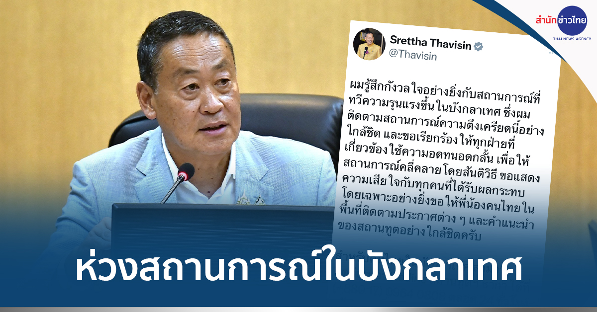 กรุงเทพฯ 20 ก.ค.- นายกรัฐมนตรี ห่วงสถานการณ์ความรุนแรงในบังกลาเทศ พร้อมประสานความช่วยเหลือคนไทย