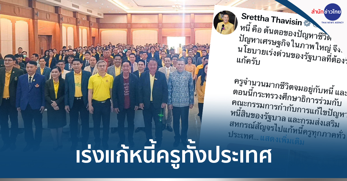 หนี้ทำให้ทุกข์ ถ้าครูและบุคลากรฯ คลายทุกข์ได้ การทำให้นักเรียนให้มีความสุขก็จะง่ายขึ้น เอาใจช่วยทีมงานแก้หนี้ รวมถึงคุณครูทุกท่านให้ผ่านพ้นมรสุมหนี้ไปได้โดยเร็ว”.-319 -สำนักข่าวไทย