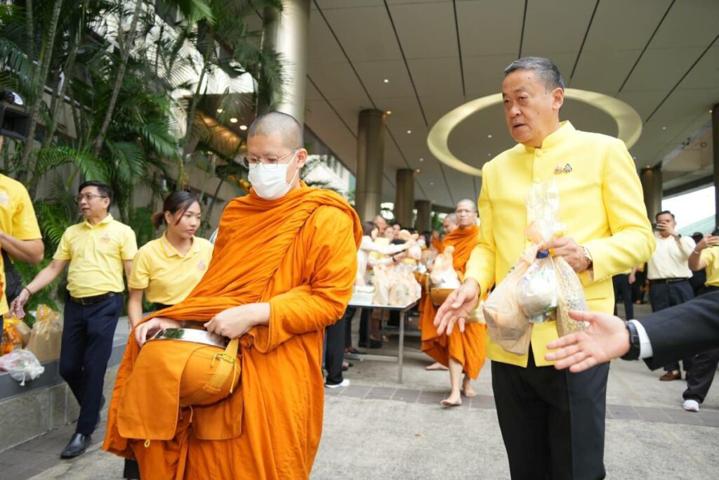 ทั้งนี้ หลังตักบาตรเสร็จนายกรัฐมนตรี ได้เดินเข้าไปช่วยพระสงฆ์ถือข้าวสาร อาหารแห้ง ที่สมาชิกพรรคฯ นำมาร่วมทำบุญ เพื่อนำกลับวัด