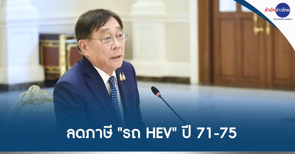 ทำเนียบฯ 26 ก.ค.-“บอร์ด EV” เคาะมาตรการสนับสนุนช่วงเปลี่ยนผ่านอุตสาหกรรมยานยนต์ ไฟเขียวปรัดลดอัตราภาษีสรรพสามิต “รถ HEV” ปี 71-75 ภายใต้ 4 เงื่อนไข คาดมีบริษัทสนใจไม่ต่ำกว่า 5 ราย เงินลุงทุน 4 ปี ไม่ต่ำกว่า 50,000 ล้านบาท