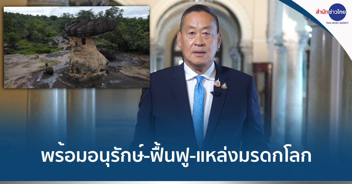 นายเศรษฐา ทวีสิน นายกรัฐมนตรี กล่าวถ้อยแถลงต่อที่ประชุมคณะกรรมการมรดกโลกสมัยสามัญ ครั้งที่ 46 ผ่านระบบวีดิทัศน์ ภายหลังคณะกรรมการมรดกโลก มีมติให้ขึ้นทะเบียนอุทยานประวัติศาสตร์ภูพระบาท เป็นมรดกโลก