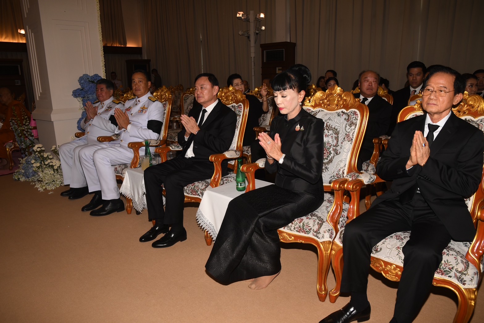 ทั้งนี้ ในเวลา 17.50 น. นายทักษิณ ชินวัตร อดีตนายกรัฐมนตรี ได้เดินทางมาถึง เพื่อร่วมพิธีสวดอภิธรรมศพคุณแม่ชดช้อย ทวีสิน