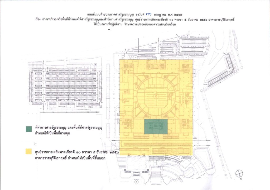 ศาลรัฐธรรมนูญ 1 ส.ค.- ประธานศาล รธน.ลงนามประกาศกำหนดพื้นที่ควบคุม รักษาความปลอดภัยและความสงบเรียบร้อย ระหว่างการประชุมและอ่านคำวินิจฉัยคดียุบพรรคก้าวไกลและคุณสมบัตินายกรัฐมนตรี 7 ส.ค. และ 14 ส.ค.