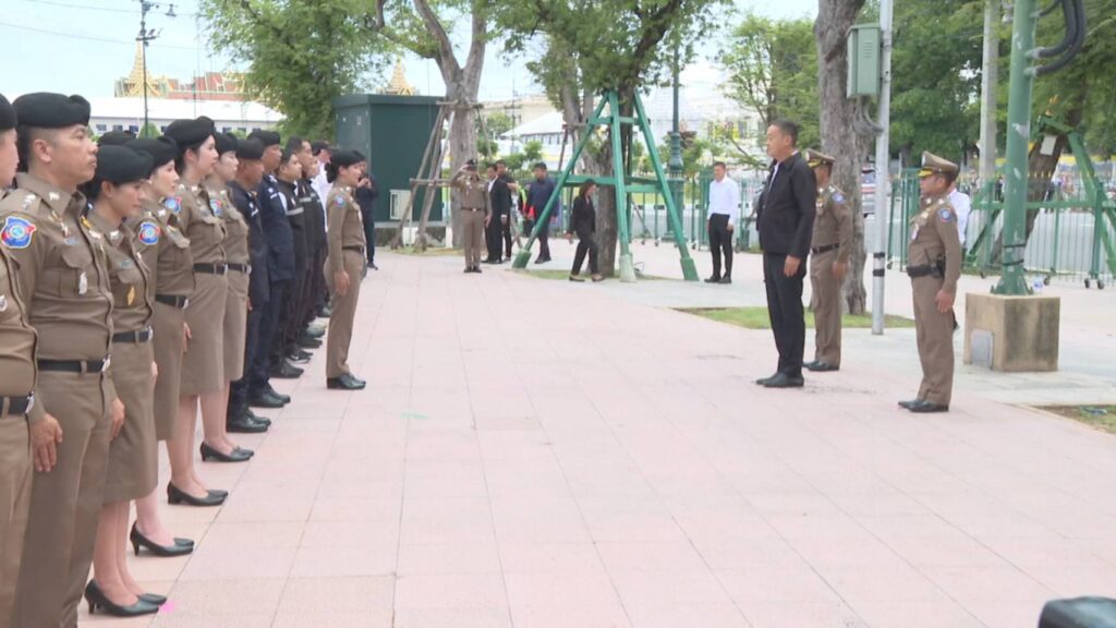 นายเศรษฐา ทวีสิน นายกรัฐมนตรี เดินทางตรวจเยี่ยมและให้กำลังใจในการปฏิบัติหน้าที่ของตำรวจท่องเที่ยว ที่บริเวณสนามหลวง ฝั่งวัดพระแก้ว โดยมี พล.ต.ท.ศักดิ์ศิรา เผือกอ่ำ ผู้บัญชาการตำรวจท่องเที่ยว และนายตำรวจท่องเที่ยว 75 นาย ให้การต้อนรับ