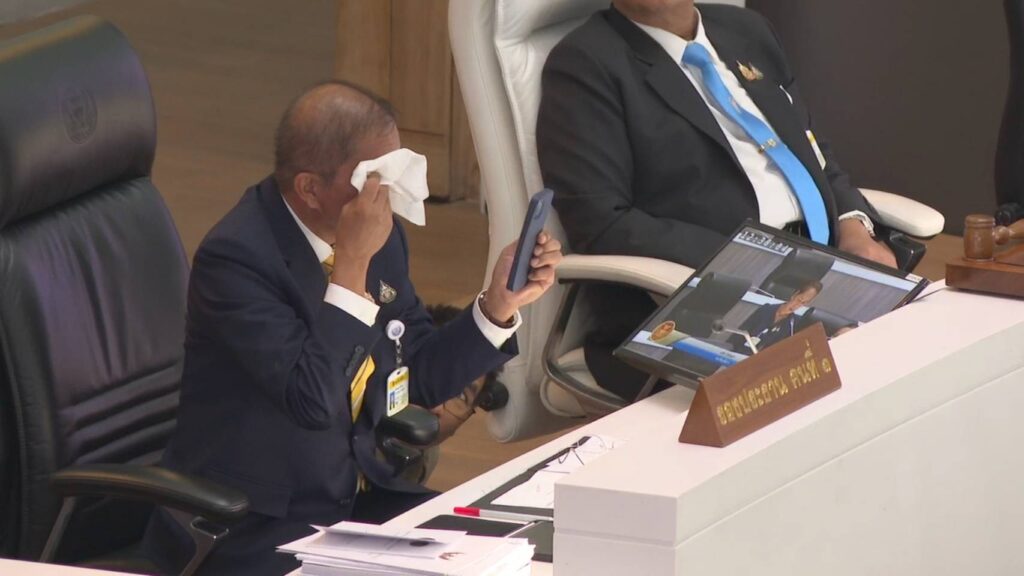 ทั้งนี้ การอภิปรายของนางแดงนั้น ทำให้นายมงคล สุระสัจจะ ประธานวุฒิสภา ที่นั่งอยู่บนบัลลังก์ ได้นำโทรศัพท์ มาบันทึกภาพ ก่อนที่จะหยิบกระดาษมาซับน้ำตาอยู่นานแล้ว จนนางแดงอภิปรายเสร็จสิ้นแล้ว ก็ยังคงเช็ดอยู่