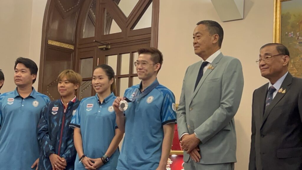 นายเสริมศักดิ์ พงษ์พานิช รัฐมนตรีว่าการกระทรวงการท่องเที่ยวและกีฬา นำ “วิว กุลวุฒิ วิทิตศานต์” นักกีฬาแบดมินตันเหรียญเงินโอลิมปิก 2024 พร้อมด้วย เมย์ รัชนก อินทนนท์, เม ศุภนิดา เกตุทอง,โค้ชเป้ ภัททพล เงินศรีสุข โค้ชผู้ฝึกสอน, แม่ปุก กมลา ทองกร ประธานโรงเรียนแบดมินตันบ้านทองหยอด และครอบครัวของนักกีฬา เข้าพบนายเศรษฐา ทวีสิน นายกรัฐมนตรี ณ ห้องสีม่วง ตึกไทยคู่ฟ้า ทำเนียบรัฐบาล