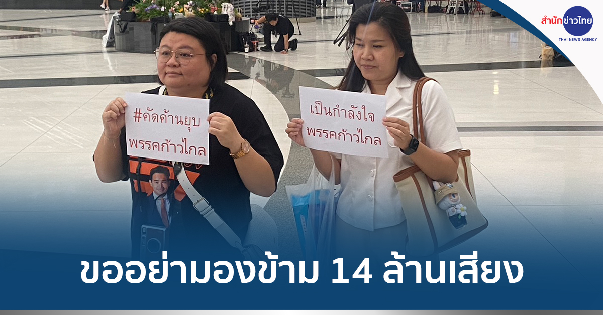 ศูนย์ราชการ 7 ส.ค. – กองเชียร์ส้ม รวมตัวศาลรัฐธรรมนูญ ชูป้ายให้กำลังใจ “ก้าวไกล” ย้ำไม่มีความเกี่ยวข้องกับพรรค ขอ กกต.อย่ามองข้าม 14 ล้านเสียง