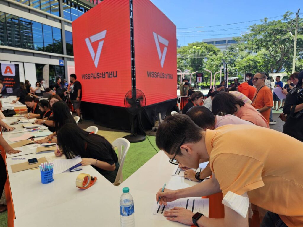 สำหรับการเปิดรับสมาชิก รับบริจาคเงินอุดหนุนพรรคการเมือง ที่พรรคประชาชนจัดขึ้น ณ Stadium One ถนนบรรทัดทอง วันนี้เป็นวันแรก หลังเปิดตัวพรรคประชาชนอย่างเป็นทางการเมื่อวานนี้ ใช้ลานกิจกรรมจัดพื้นที่รับสมัครเป็นรูปสามเหลี่ยมเหมือนสัญลักษณ์ของพรรค โดยแบ่งเป็นจุดให้บริการ ทั้งการรับสมัครออนไลน์ และแบบ walk in เริ่มที่จุดตรวจสอบสิทธิก่อนกรอกใบสมัคร หากผ่าน จะได้สติกเกอร์สีเขียว เพื่อกรอกใบสมัครและชำระค่าสมาชิก และยังมีจุดรับบริจาคเงิน โดยมีประชาชนให้ความสนใจมาต่อแถวรอตั้งแต่ยังไม่เริ่มทำกิจกรรม ซึ่งประชาชนส่วนใหญ่ที่มาสมัครสมาชิก ล้วนแต่เคยเป็นสมาชิกพรรคอนาคตใหม่และพรรคก้าวไกลมาก่อน.-319.-สำนักข่าวไทย