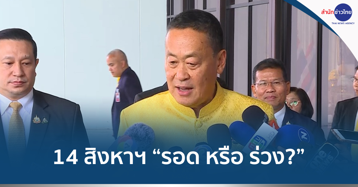 13 ส.ค. – 14 สิงหาคม นายเศรษฐา ทวีสิน นายกรัฐมนตรี “รอด หรือ ร่วง?” กรณีแต่งตั้ง “พิชิต ชื่นบาน” นั่งเก้าอี้รัฐมนตรีประจำสำนักนายกรัฐมนตรี ฟังมุมมองจาก รศ.ดร.พิชาย รัตนดิลก ณ ภูเก็ต ผอ.หลักสูตรปริญญาเอกสาขาการเมืองและยุทธศาสตร์การพัฒนา นิด้า.-สำนักข่าวไทย