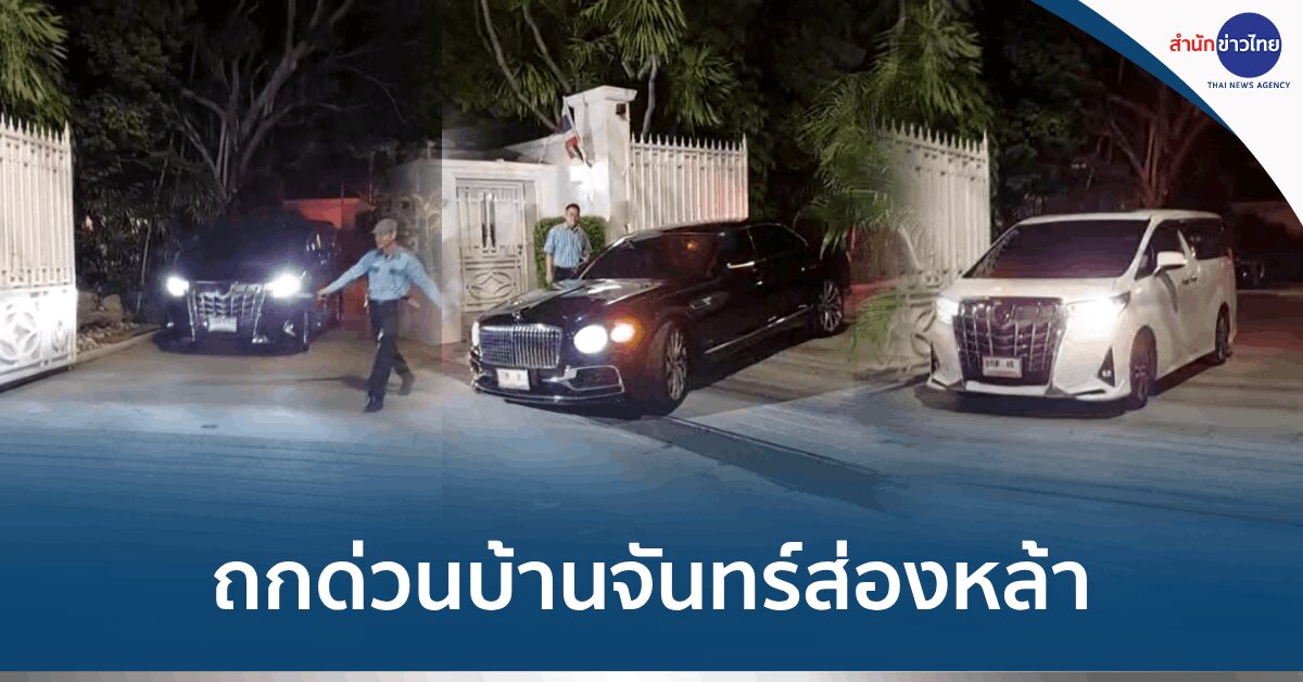 จากนั้นในเวลา 19.16 น. ได้มีรถเริ่มทยอยขับออกจากบ้านจันทร์ส่องหล้า.-316-สำนักข่าวไทย