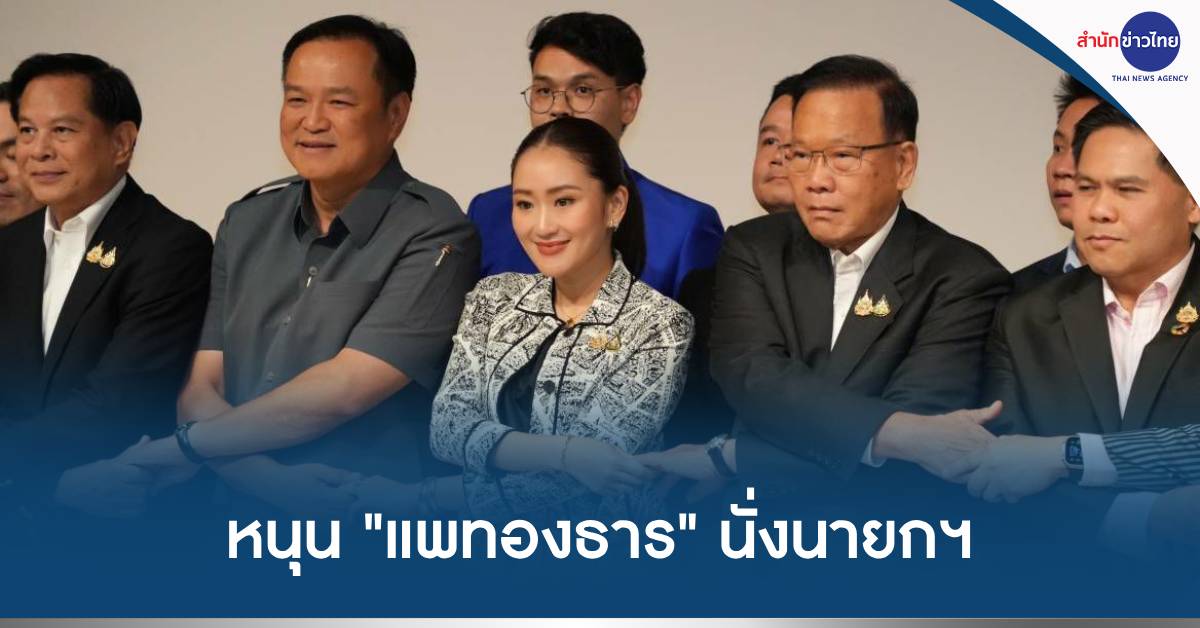 กทม. 15 ส.ค.-“เพื่อไทย” แถลงส่งชื่อ “แพทองธาร” นั่งนายกฯ คนที่ 31 ด้านพรรคร่วมประสานเสียงพร้อมโหวตให้พรุ่งนี้ไม่แตกแถว มั่นใจในความรู้ความสามารถ ให้คำมั่นทำงานส่งรัฐนาวาลำนี้ถึงฝั่งให้ได้ ด้าน “แพทองธาร” ขอบคุณทุกพรรคหนุน มั่นใจช่วยกันนำพาประเทศหลุดพ้นจากวิกฤตเศรษฐกิจ