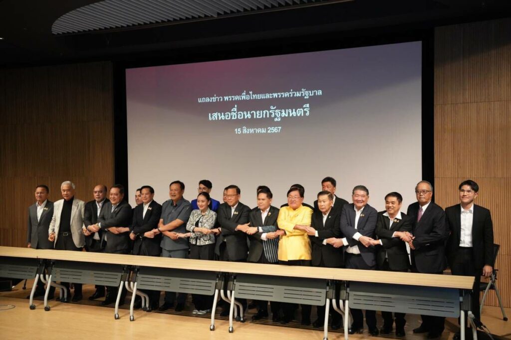 วันนี้พวกเราในนามพรรคเพื่อไทย และ พรรคร่วมรัฐบาลมีจุดยืนเดียวกัน หลังจากที่พรรคเพื่อไทยมีการประชุมกรรมการบริหารพรรค มีมติเสนอชื่อ นางสาวแพทองธาร ชินวัตร เป็นนายกรัฐมนตรีคนที่ 31 ของประเทศไทย และจากที่ประธานสภาผู้แทนราษฎร ได้ออกหนังสือเชิญประชุมวาระการประชุมในวันพรุ่งนี้ ซึ่งเป็นการเลือกนายกรัฐมนตรี ในสภาผู้แทนราษฎร จะมีการเสนอชื่อ โดยพรรคเพื่อไทย และมีพรรคร่วมรัฐรัฐบาลทุกพรรคให้ความเห็นชอบ ให้ “นางสาวแพทองธาร ชินวัตร” เป็นนายกรัฐมนตรี