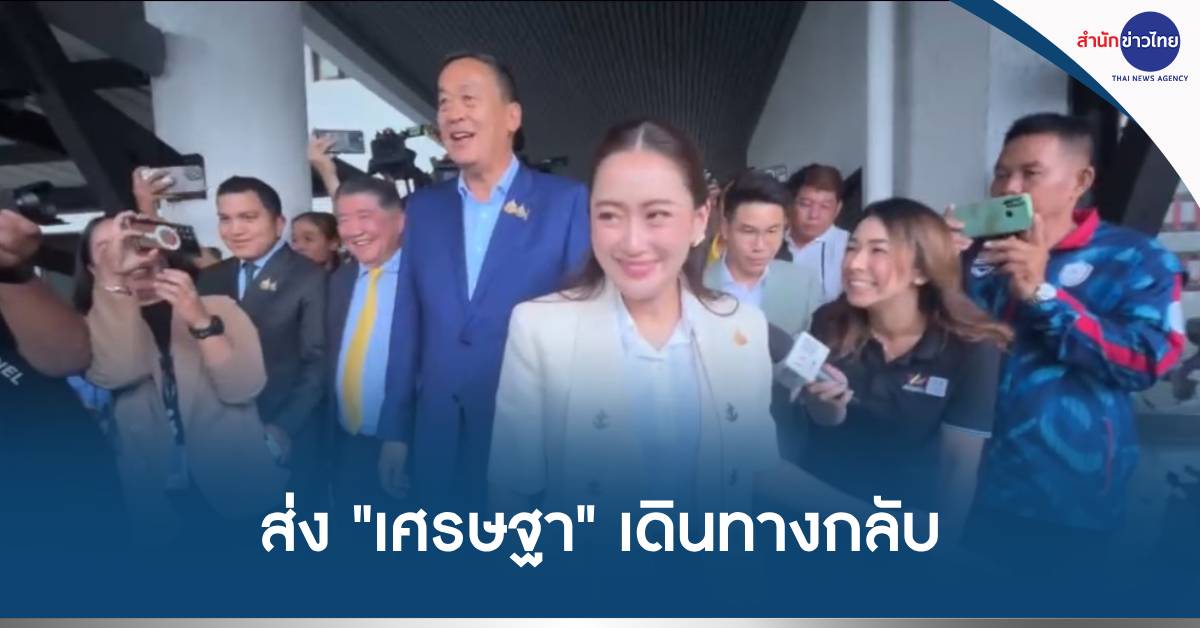 กทม. 16 ส.ค.-“แพทองธาร” ส่ง “เศรษฐา” เดินทางกลับ หลังมาให้กำลังใจ โหวตนายกรัฐมนตรีคนที่ 31 ปัดตอบ ส่งไม้ต่อสานนโยบายหรือไม่
