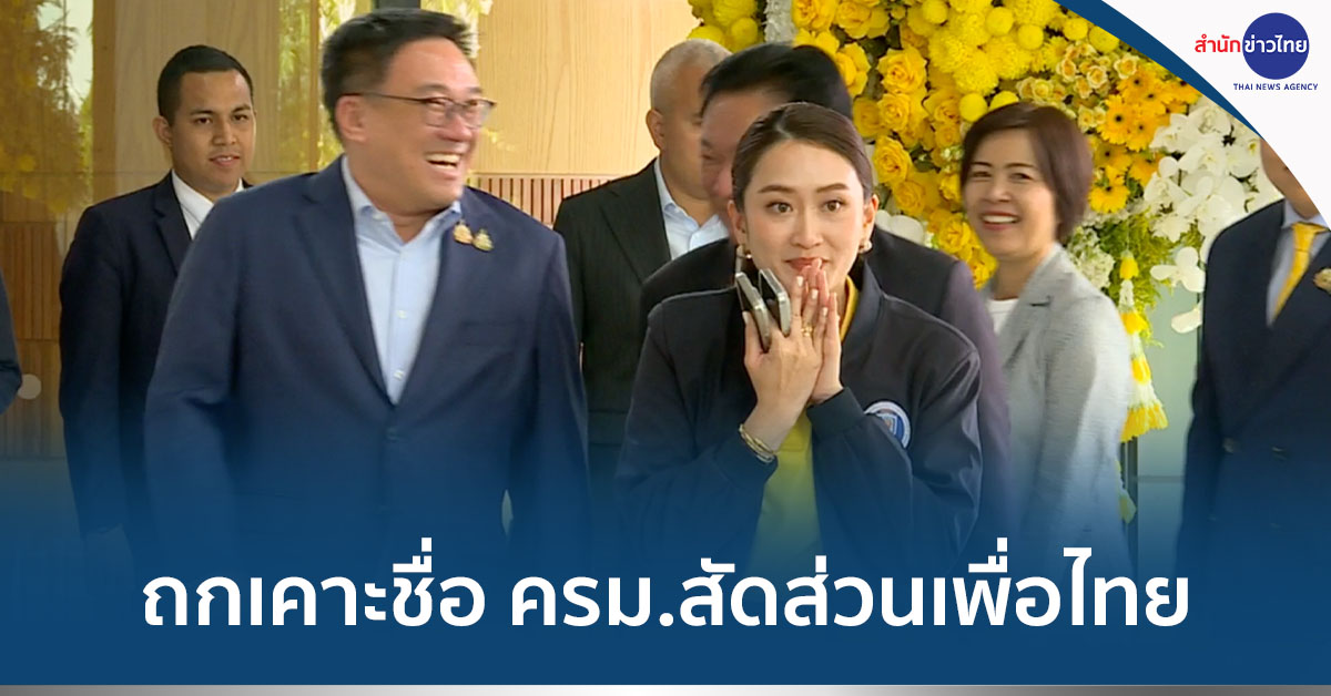 กรุงเทพฯ 19 ส.ค.- นายกฯ เรียกหารือคณะกรรมการยุทธศาสตร์เพื่อไทย คาดเคาะชื่อ ครม.สัดส่วนพรรค ก่อนส่งตรวจคุณสมบัติพรุ่งนี้ คาดหลุดเก้าอี้ 5-6 คน