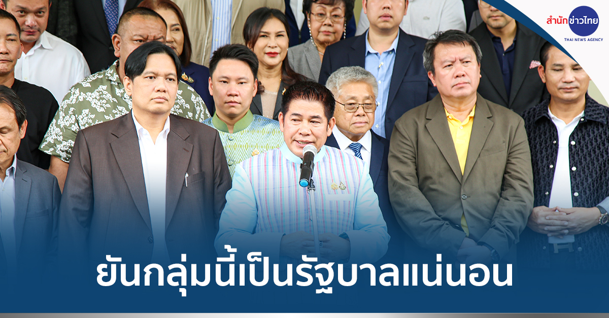 “ขอยืนยันว่า สส.พปชร. ที่ยืนอยู่ตรงนี้จำนวน 22 คน และมีอีก 7 คนที่กำลังเดินทางมา เป็นรัฐบาลทั้งหมด นอกจากนี้ยังมีตัวแทนพรรคเล็กมาร่วมด้วย” ร.อ.ธรรมนัส กล่าว