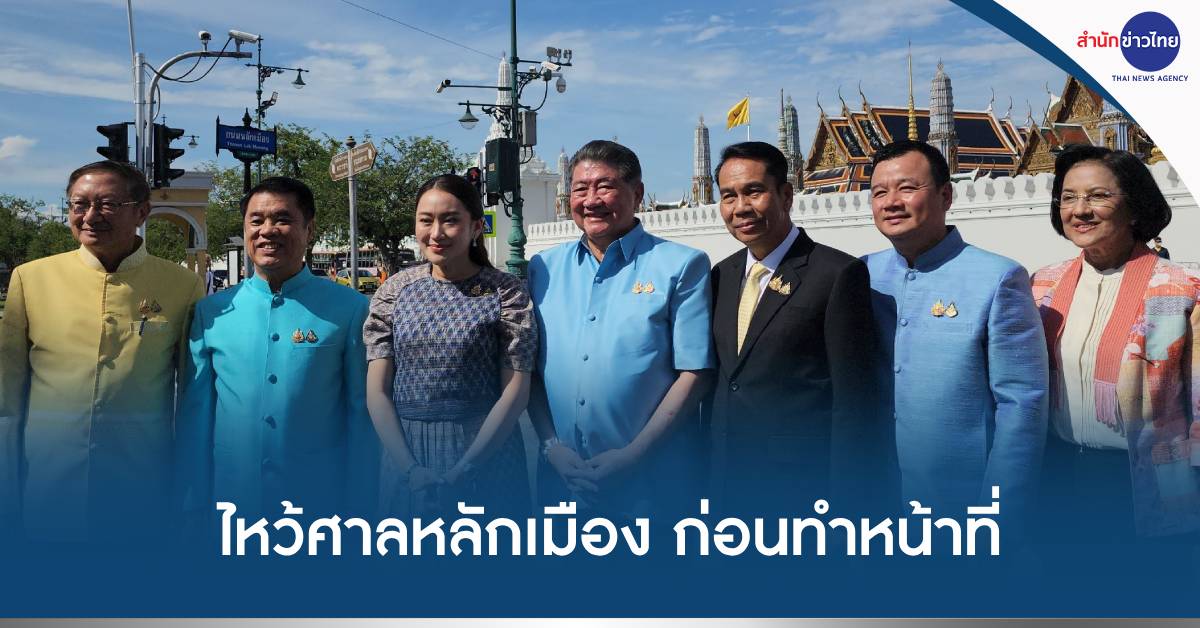 ศาลหลังเมือง 22 ส.ค.-“แพทองธาร” นายกฯ สวมชุดโทนฟ้า พร้อม “ภูมิธรรม-สุทิน-สุริยะ” แกนนำเพื่อไทยไหว้ศาลหลักเมือง-วัดพระแก้ว เอาฤกษ์-เอาชัย เสริมสิริมงคล ก่อนทำหน้าที่นายกฯ