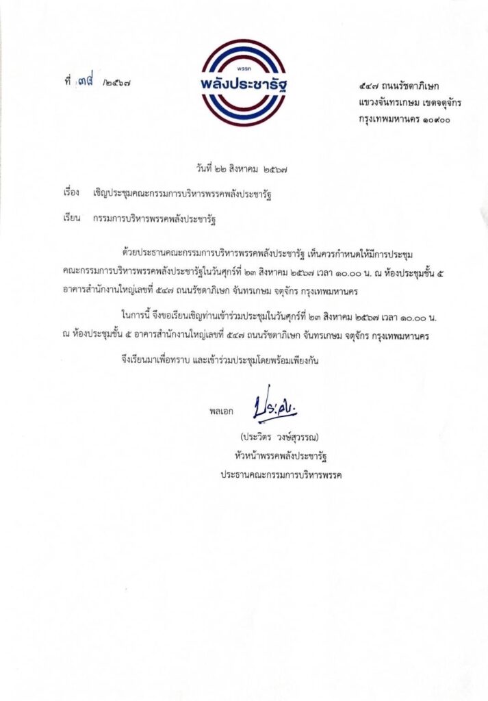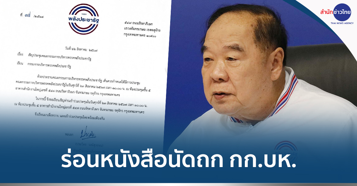 กทม. 22 ส.ค.- “พล.อ.ประวิตร” ร่อนหนังสือเรียกประชุม กก.บห.พรรคพลังประชารัฐ พรุ่งนี้ (23 ส.ค.) จับตา 10 โมงเช้า