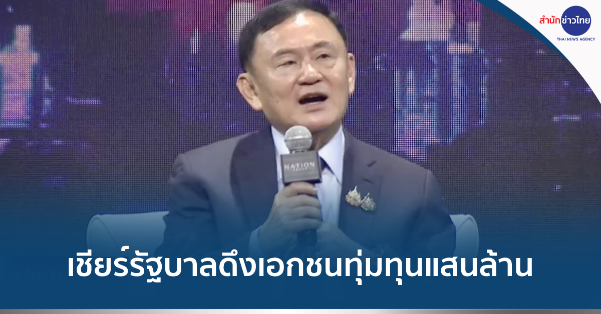 พารากอน 22 ส.ค. – “ทักษิณ” เชียร์รัฐบาลดึงเอกชนทุ่มทุนแสนล้าน เดินหน้า Entertainment Complex สู้เพื่อนบ้าน แนะถมทะเลบางขุนเทียน-ปากน้ำ ผุดเมืองใหม่ ให้รถไฟ-รถไฟฟ้าวิ่งเท่านั้น กันน้ำท่วม กทม. ชี้รถไฟฟ้า 20 บาทตลอดสาย หาเสียงแล้วต้องทำให้ได้ พร้อมให้ดึงรถ EV พวงมาลัยขวา มาผลิตในไทย