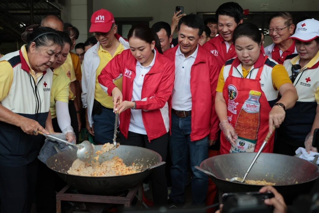 โดยทันทีที่มาถึง จ.น่าน นางสาวแพทองธาร เดินทางไปยังสถานีดับเพลิงเทศบาลเมืองน่าน ที่ใช้เป็นที่สำหรับประกอบอาหารเป็นโรงครัวแจกจ่ายประชาชน โดยนางสาวแพทองธาร ได้เดินทักทายให้กำลังใจอาสาสมัครและสภากาชาด ที่มาช่วยกันปรุงอาหารให้กับประชาชน พร้อมกันนี้นางสาวแพทองธาร ได้ช่วยปรุงอาหาร ทอดไข่เจียว ผัดเส้น และช่วยทำข้าวผัดเมืองแพร่ ร่วมกับนายแพทย์ชลน่าน และบรรจุอาหารใส่ถุง เพื่อนำไปมอบให้กับผู้ประสบภัยในจุดที่น้ำยังท่วมสูง
