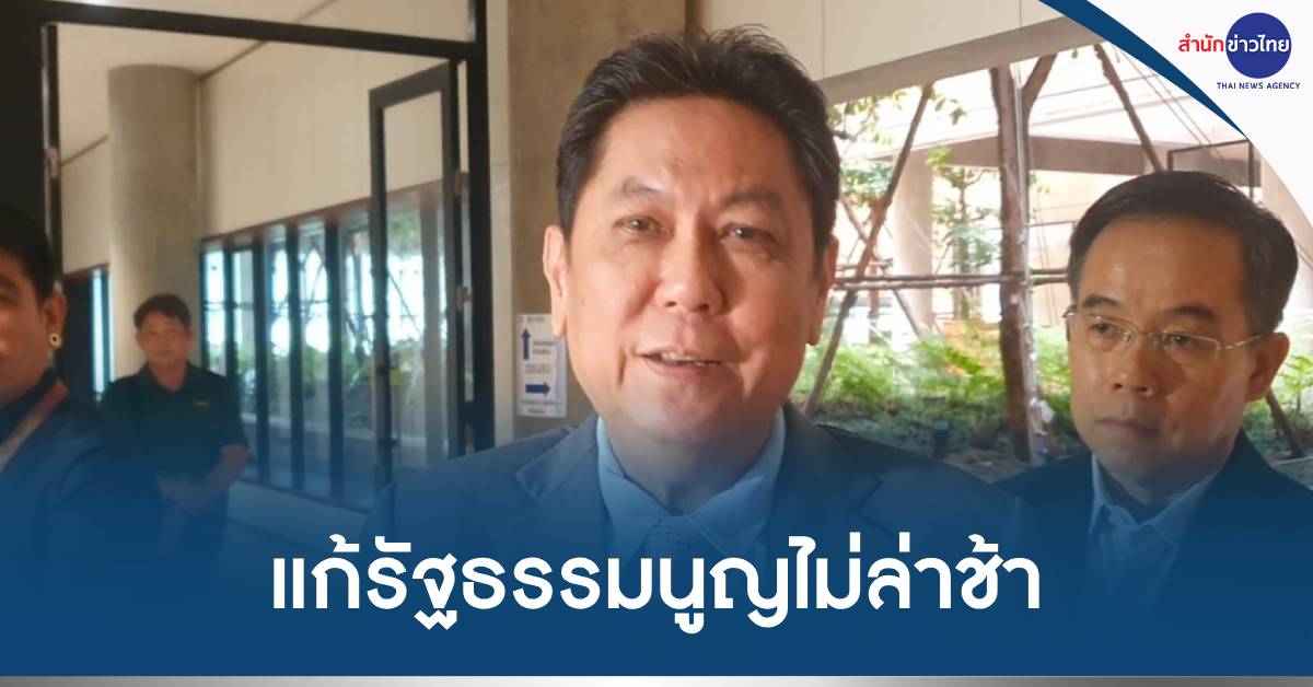 รัฐสภา 26 ส.ค.-ประธานวิปรัฐบาล ยืนยันแก้รัฐธรรมนูญไม่ล่าช้า ยินดีรับข้อเสนอ ‘หัวหน้าพรรคประชาชน’ มาหารือ ส่วนวันเลือกรองประธานสภาฯ คนที่ 1 ให้รอตั้ง ครม. เสร็จก่อน คาดได้ภายหลังนายกรัฐมนตรีแถลงนโยบาย
