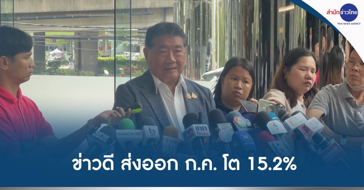 ทำเนียบ 27 ส.ค.-“ภูมิธรรม” เผยข่าวดี ตัวเลขการส่งออกเดือนกรกฎาคม ขยายตัว 15.2% โตสุดในช่วง 28 เดือนที่ผ่านมา เป็นดอกผลการทำงานของรัฐบาล พร้อมเผยกระแสตอกย้ำความเชื่อมั่น “แพทองธาร” หุ้นขึ้น 7 วันติดต่อกัน