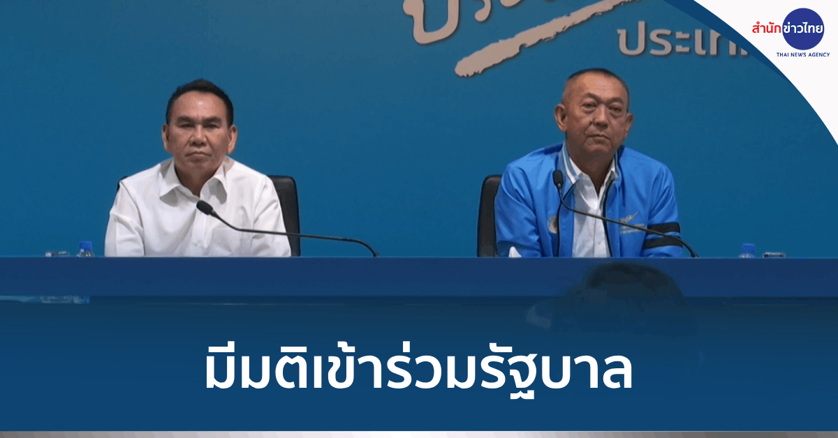 ทั้งนี้ การประชุมร่วมใช้เวลากว่า 3 ชั่วโมง ก่อนที่นายเฉลิมชัยจึงได้ขอให้ที่ประชุมมีมติว่าจะรับรองมติของกก.บห.ในการเข้าร่วมรัฐบาลหรือไม่ ปรากฏว่าที่ประชุมมีมติ 43 เสียง ให้พรรคประชาธิปัตย์เข้าร่วมรัฐบาลและเสนอบุคคลทั้ง 2 ดำรงตำแหน่งทางการเมืองในรัฐบาลเพื่อไทยต่อไป