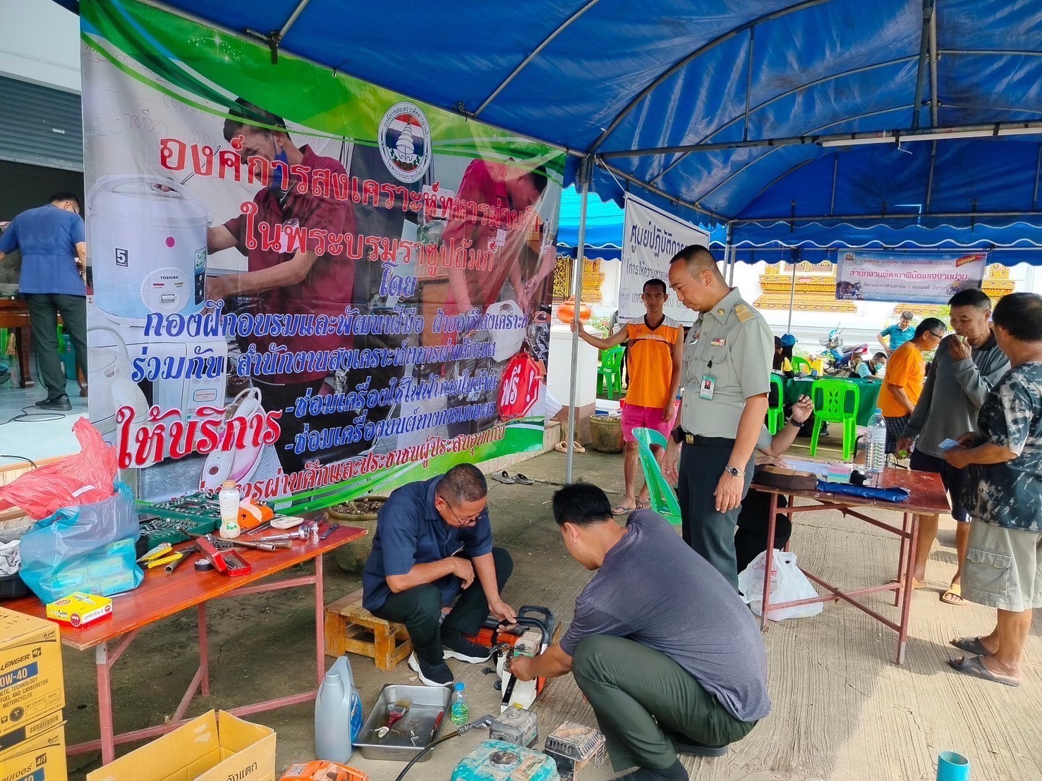 น่าน 3 ก.ย. – “อผส.” ร่วม สนง.พัฒนาฝีมือแรงงาน จ.น่าน บริการซ่อมเครื่องใช้ไฟฟ้าและเครื่องยนต์ทางการเกษตรให้แก่ทหารผ่านศึก ผู้ประสบอุทกภัย