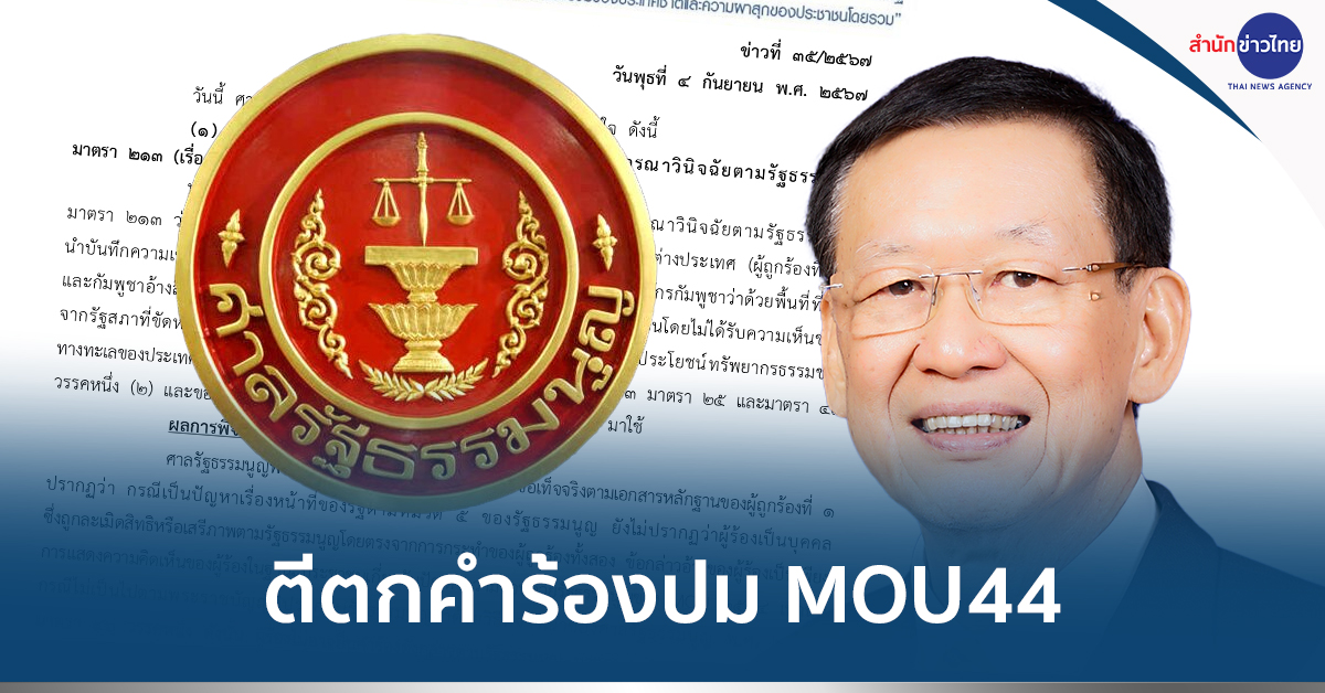 ศาลรัฐธรรมนูญ 4 ก.ย.- ศาลรัฐธรรมนูญไม่รับคำร้องขอวินิจฉัยใช้ MOU 44 แบ่งทรัพยากรทางทะเลไทย-กัมพูชา “ไพบูลย์” ไม่ใช่ผู้ถูกละเมิดสิทธิหรือเสรีภาพตามรัฐธรรมนูญโดยตรง