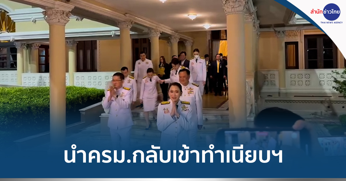 เมื่อเวลา 18.40 น. นางสาวแพทองธาร ชินวัตร นายกรัฐมนตรี และคณะรัฐมนตรี (ครม.) เดินทางกลับเข้ามายังทำเนียบรัฐบาล ภายหลังเข้าเฝ้าฯ ถวายสัตย์ปฏิญาณ โดยเข้าไปในตึกสันติไมตรีหลังนอก พร้อมถ่ายรูปเซลฟี่กับรัฐมนตรีอย่างชื่นมื่น
