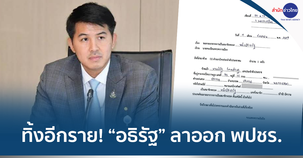 12 ก.ย.- “อธิรัฐ รัตนเศรษฐ” ทิ้ง “บิ๊กป้อม” ยื่นลาออก พปชร. เหลือแค่ “วิรัช” คนเดียว จับตาเตรียมส่งลูกชายลงชิงนายก อบจ. ในนามแก๊งส้ม