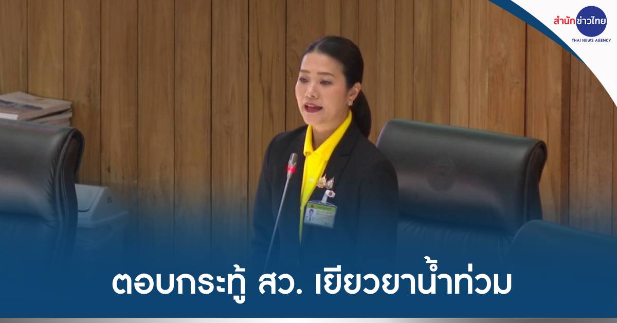 นางสาวธีรรัตน์ สำเร็จวานิชย์ รัฐมนตรีช่วยว่าการกระทรวงมหาดไทย ได้รับมอบหมายจากนายกรัฐมนตรีและรัฐมนตรีว่าการกระทรวงมหาดไทยมาตอบกระทู้แทน กล่าวว่ารัฐบาลไม่เคยนิ่งนอนใจ และรู้ว่าความเดือดร้อนทุกข์ร้อนของพี่น้องประชาชนคือหน้าที่ของรัฐบาลที่จะต้องรีบดำเนินการให้สถานการณ์นั้นกลับคืนสู่สภาวะปกติโดยเร็วที่สุด เราทราบข่าว ในเรื่องของฝนมาพายุมา มรสุมมา ตั้งแต่ก่อนหน้านี้ ไม่ว่าจะเป็นจากประเทศเพื่อนบ้าน และฝนที่ตกหนักในภาคเหนือของไทย และเราได้ดำเนินการทุกช่องทางในการเตือนภัยให้กับพี่น้องประชาชนได้รับทราบ แต่จากภาพที่เราเห็นน้ำมาเร็วิ มาแรง และมาเป็นจำนวนมากจริงๆ แต่ไม่ ได้ ทำให้เราท้อถอยได้ เรายังคงเตรียมการซักซ้อมในพื้นทื่โดยรอบและพื้นที่ที่น้ำจะไปถึง และเมื่อวันศุกร์ที่ 13 ก.ย.ที่ผ่านมา นางสาวแพทองธาร ชินวัตร นายกรัฐมนตรีได้ไปที่ด่านแม่สายและเห็นว่าในพื้นที่มีความเสียหายมาก และสภาพโคลนที่มีความหนา แค่บนถนนที่ทำการชะล้างแล้วยังสูงถึงประมาณ 1 ฟุต ซึ่งทุกหน่วยงานที่เกี่ยวข้อง ไปสำรวจความเสียหายที่เกิดขึ้น วันนั้นน้ำยังมีปริมาณที่มาก ที่สูงและแรง พี่น้องประชาชนที่อาศัยอยู่รายรอบมีกำลังใจที่ดี เมื่อได้เห็นการทำงานของทางภาครัฐที่เดินทางเข้าไป ต่างเข้ามาโผกอดและ ส่งมอบ กำลังใจให้กัน และสร้างความเชื่อมั่นว่า เรา จะไม่ทิ้งพวกเขาแน่นอน เรื่องการเยียวยาและชะล้างโคลน นายกรัฐมนตรีได้สั่งการโดยเร่งด่วน ไม่ได้เป็นหน้าที่ของใครคนใดคนหนึ่ง แต่เป็นหน้าที่ของทุกหน่วยงาน ทุกกระทรวงที่มีเครื่องมือเครื่องไม้ที่มีสรรพกำลังให้ลงไปช่วยเหลือกัน เช่นในส่วนของกระทรวงกลาโหม โดยรองนายกรัฐมนตรี นายภูมิธรรม เวชยชัย ได้ส่งหน่วยงานทั้งกองทัพภาค 3 และหลายหน่วยงานเข้าไประดมกำลังในพื้นที่ โดยจะเห็นภาพชัดเจนว่า กำลังทหารทั้งทางบก ทางอากาศ ทางน้ำ ต่างเอาเครื่องมือที่มีอยู่ลงไปช่วยเหลือกัน มีการระดมกำลังเจ้าหน้าที่ ซึ่งจะเห็นว่าพี่น้องประชาชน ทั้งที่ติดอยู่ในชั้น 2 และไม่สามารถเคลื่อนย้ายออกมาได้ ก็ลำเลียงเครื่องมือเข้าไปในที่เกิดเหตุมีการขนย้ายผู้สูงอายุ กลุ่มเปราะบาง เด็กเล็กออกมาจากพื้นที่เกิดเหตุ โดยปลอดภัย