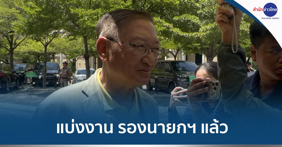 ทำเนียบฯ 16 ก.ย.-เลขาธิการนายกฯ เผย “แพทองธาร” นายกฯ เซ็นแบ่งงานรองนายกฯ แล้ว “ประเสริฐ” คุม สธ.- ทส.-งานซอฟต์พาวเวอร์ บอกประชุม ครม.นัดแรก เตรียมตั้งที่ปรึกษานายกฯ ขณะที่ชื่อโฆษกรัฐบาลถึงมือแล้ว มีแค่ชื่อเดียว