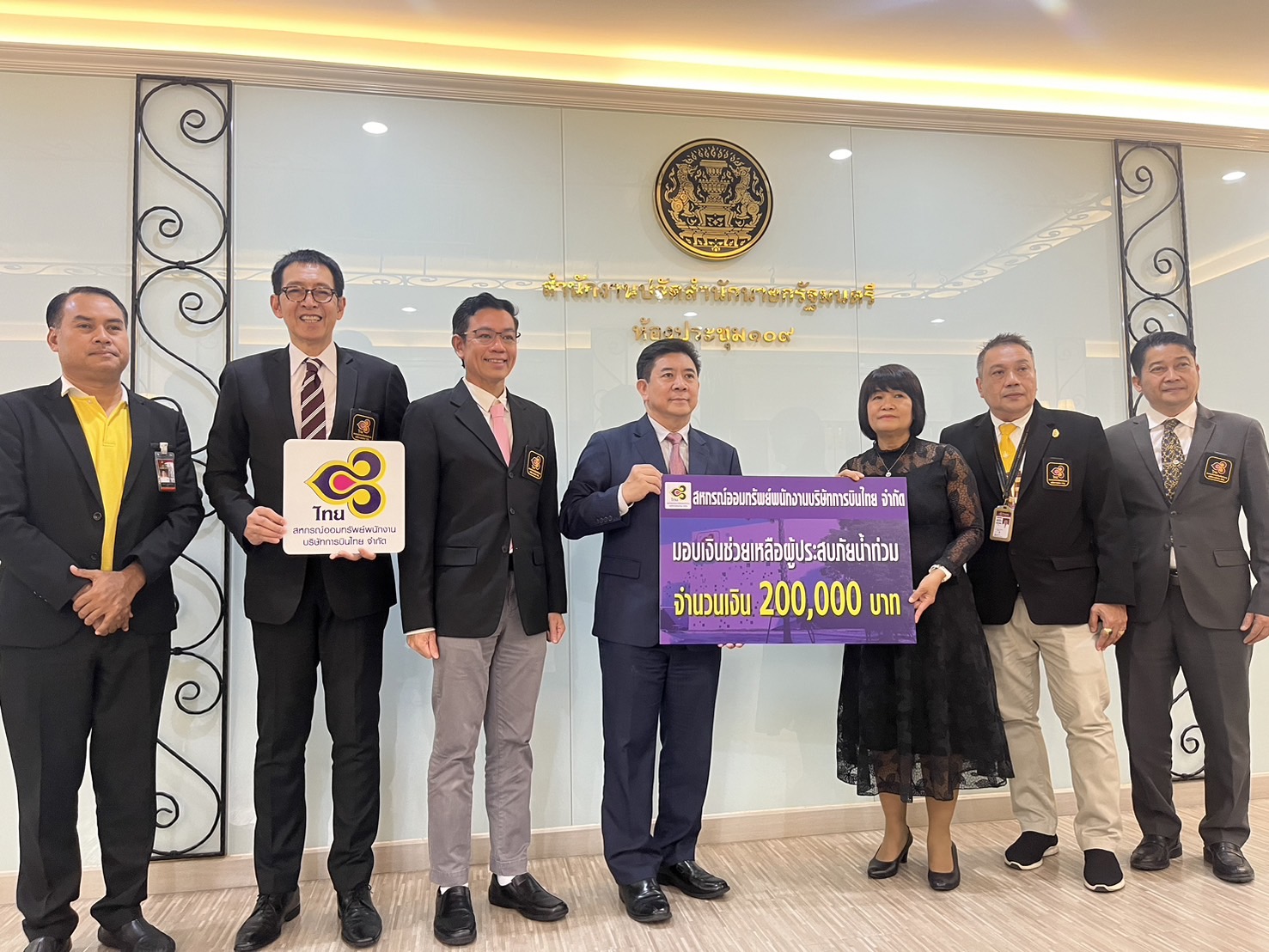 นางชื่นชีวัน ลิมป์ธีระกุล ผู้ตรวจราชการสำนักนายกรัฐมนตรี ผู้แทนปลัดสำนักนายกรัฐมนตรี รับมอบเงินบริจาค จากนายนินนาท พัฒนวิบูลย์ ประธานกรรมการสหกรณ์ออมทรัพย์พนักงานบริษัทการบินไทย จำกัด นายจิรยุทธ ภุชงคสมุทท์ รองประธานกรรมการสหกรณ์ออมทรัพย์ฯ และคณะกรรมการสหกรณ์ออมทรัพย์ฯ เพื่อสมทบ “กองทุนเงินช่วยเหลือผู้ประสบสาธารณภัย สำนักนายกรัฐมนตรี” จำนวน 200,000 บาท เพื่อนำไปช่วยเหลือผู้ประสบอุทกภัยในพื้นที่ภาคเหนือ
