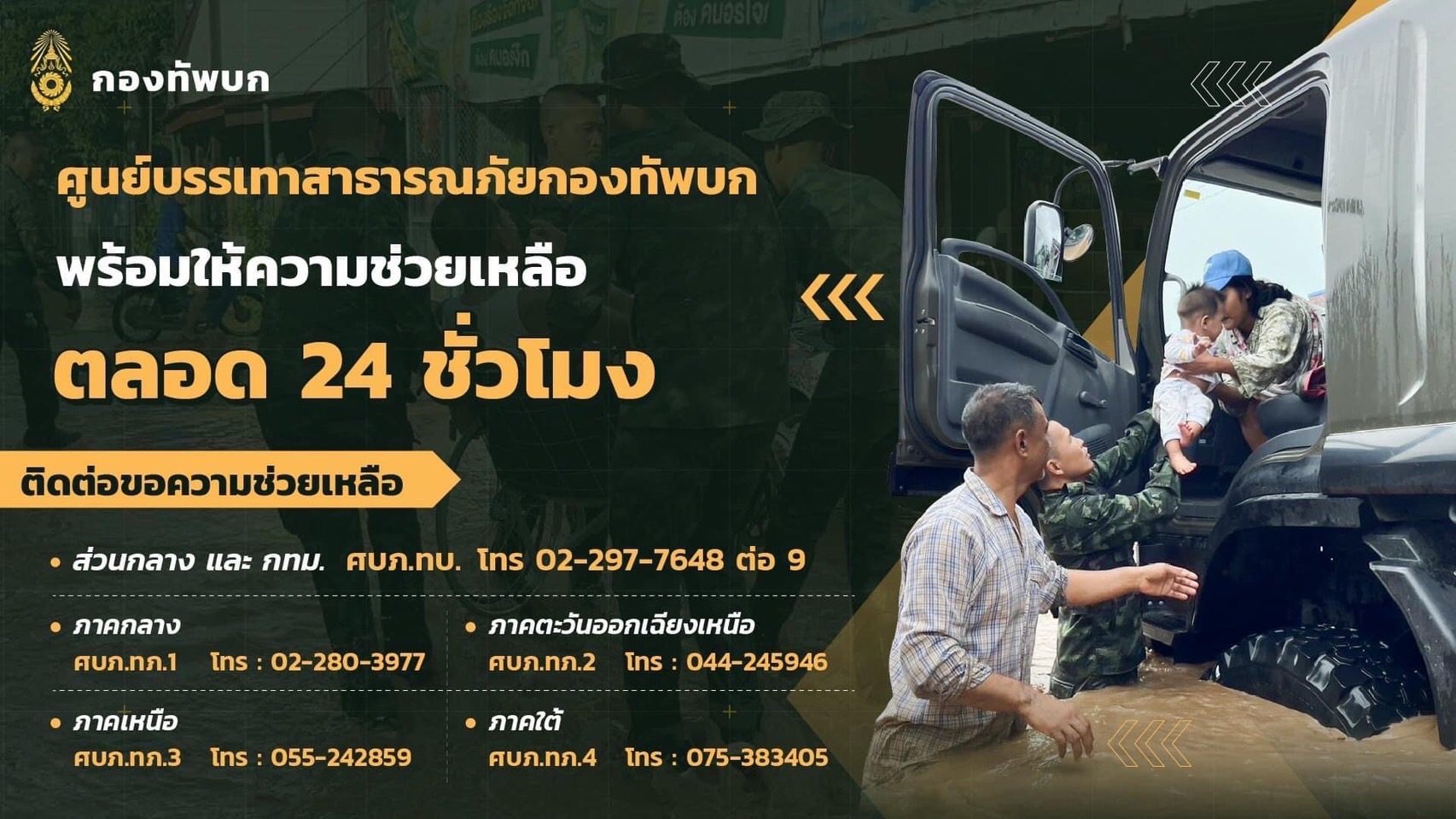 ทั้งนี้ แม้ว่าปัจจุบันระดับน้ำในพื้นที่มีแนวโน้มที่จะลดลงอย่างต่อเนื่อง แต่ทางมณฑลทหารบกที่ 32 ซึ่งเป็นหน่วยรับผิดชอบในพื้นที่ยังคงเฝ้าระวังสถานการณ์ และเตรียมความพร้อมกำลังพล เครื่องมือและยุทโธปกรณ์ เพื่อให้การช่วยเหลือประชาชนได้ในทันทีที่เกิดเหตุ ซึ่งไม่เพียงแค่ใน จ.ลำปาง เท่านั้น แต่ทุกพื้นที่ทั่วประเทศ หากประชาชนได้รับความเดือดร้อนหรือต้องการขอรับการสนับสนุนในด้านต่างๆ สามารถแจ้งหน่วยทหารในพื้นที่ หรือติดต่อผ่านทางหมายเลขโทรศัพท์ ได้แก่ ศูนย์บรรเทาสาธารณภัยกองทัพบก ในพื้นที่ส่วนกลาง และ กทม. โทร. 02-297-7648-9 กองทัพภาคที่ 1 พื้นที่ภาคกลาง โทร. 02-280-3977, กองทัพภาคที่ 2 พื้นที่ภาคตะวันออกเฉียงเหนือ โทร. 044-245-946 กองทัพภาคที่ 3 พื้นที่ภาคเหนือ โทร. 055-242-859 และกองทัพภาคที่ 4 ในพื้นที่ภาคใต้ โทร. 075-383-405 ได้ตลอด 24 ชม. – 313 – สำนักข่าวไทย