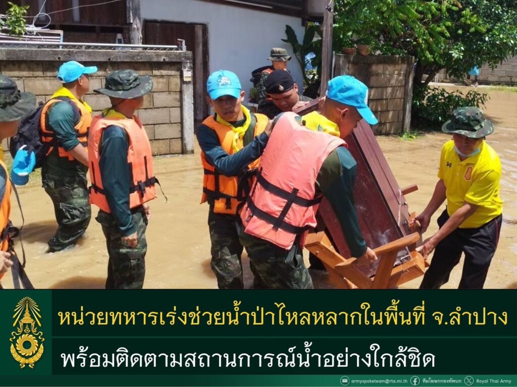ลำปาง 18 ก.ย. – หน่วยทหารเร่งช่วยผู้ประสบภัยน้ำป่าไหลหลากในพื้นที่ จ.ลำปาง พร้อมติดตามสถานการณ์น้ำอย่างใกล้ชิด