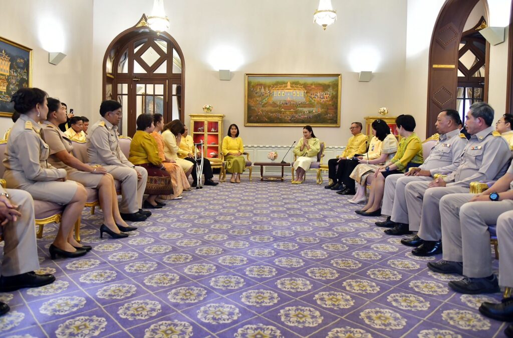 นางสาวแพทองธาร ชินวัตร นายกรัฐมนตรี ให้โอวาทคณะข้าราชการ ลูกจ้างประจำ และพนักงานราชการ ในสังกัดสำนักเลขาธิการนายกรัฐมนตรี ที่เกษียณอายุราชการ 17 คน เข้าพบอำลา โดยมี นพ.พรหมินทร์ เลิศสุริย์เดช เลขาธิการคณะรัฐมนตรี เป็นผู้นำคณะเข้าพบบนตึกไทยคู่ฟ้า