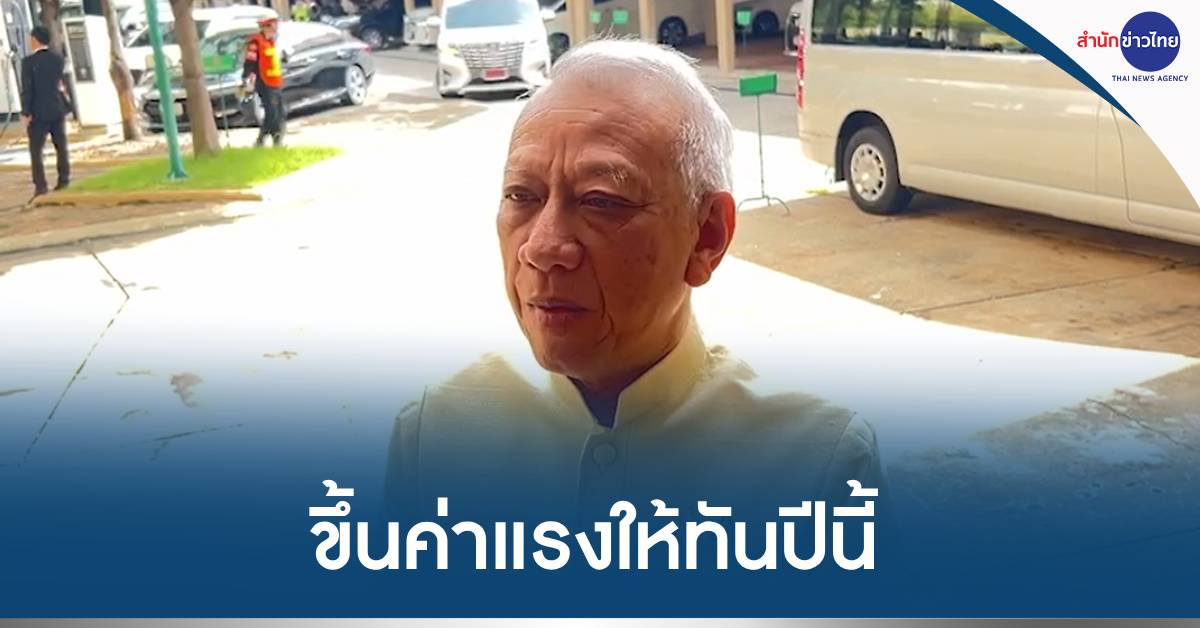 เมื่อถามว่าจะขยับกรอบการปรับขึ้นค่าแรงขั้นต่ำเป็นช่วงใดนั้น นายพิพัฒน์ กล่าวว่า เนื่องจากสภาวะปัจจุบัน การจะประกาศขึ้นค่าแรงขั้นต่ำก็เห็นใจกับคณะกรรมการไตรภาคี ที่ยังเกิดเหตุขัดข้อง ทั้งฝ่ายนายจ้างและลูกจ้าง จึงจำเป็นต้องเลื่อนการประกาศขึ้นค่าแรง ซึ่งเดิมตั้งไว้ให้ทันใน 1 ต.ค.2567 แต่เนื่องจากปัจจุบันค่าเงินบาทแข็งมาก สภาวะการส่งออกเป็นไปได้ยาก จึงต้องนำเรื่องไปหารือกับนายกรัฐมนตรีอีกครั้งหนึ่ง แต่ยืนยันว่าจะยังคงเดินหน้าขึ้นค่าแรงขั้นต่ำเป็น 400 บาท และจะต้องทันภายในปีนี้ เมื่อกรรมการมีความพร้อมทุกอย่างจะต้องดำเนินการอีกครั้ง
