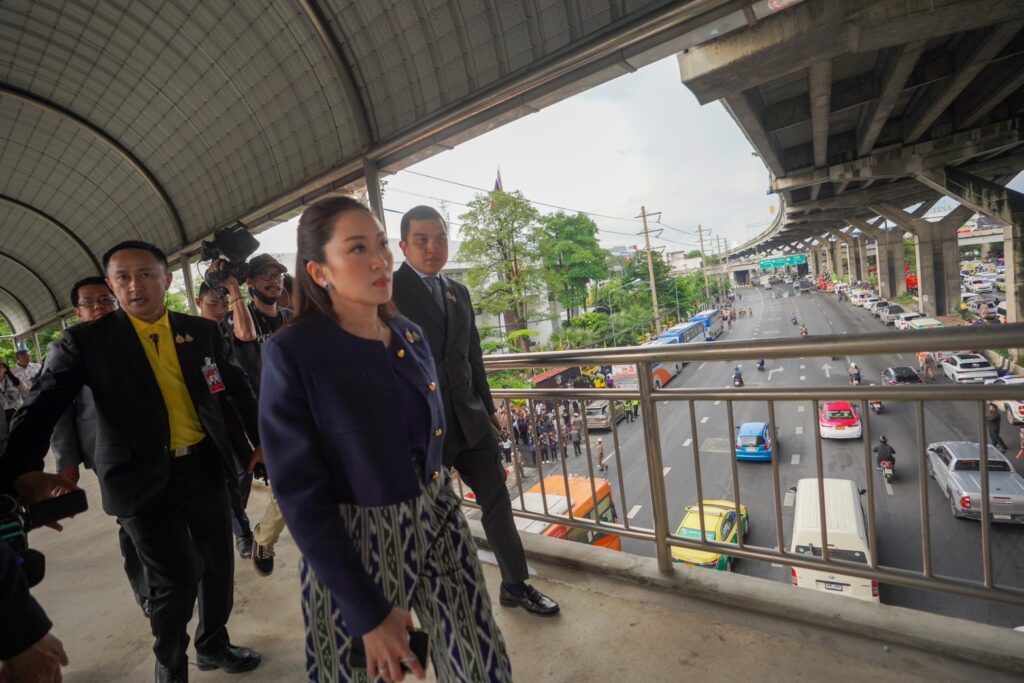 น.ส.แพทองธาร ชินวัตร นายกรัฐมนตรี เดินทางออกจากโรงพยาบาลแพทย์รังสิต เพื่อมายังศูนย์บัญชาการเหตุการณ์ชั่วคราว ฝั่งตรงข้ามอนุสรณ์สถานแห่งชาติ ในการเยี่ยมและให้กำลังใจเด็กนักเรียนและครูที่ไม่ได้รับบาดเจ็บ จากเหตุเพลิงไหม้รถบัสโดยสารนักเรียนจากจังหวัดอุทัยธานี เพื่อมาทัศนศึกษาที่กรุงเทพฯ ซึ่งอยู่ใกล้บริเวณจุดเกิดเหตุ เนื่องจากปัญหาการจราจรที่ติดขัดทำให้นายกรัฐมนตรี ลงจากรถเพื่อเดินข้ามสะพานลอยไปยังศูนย์พักพิง โดยมีนายอนุทิน ชาญวีรกูล รองนายกรัฐมนตรีและรัฐมนตรีว่าการกระทรวงมหาดไทย พล.ต.อ.เพิ่มพูน ชิดชอบ รัฐมนตรีว่าการกระทรวงศึกษาธิการ และ พล.อ.ทรงวิทย์ หนุนภักดี ผู้บัญชาการทหารสูงสุด ซึ่งมาบัญชาการสถานการณ์อยู่ก่อนแล้ว