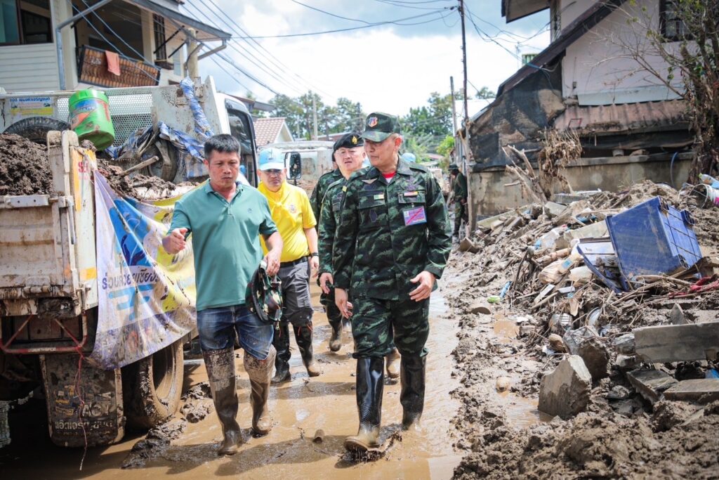 เชียงราย 2 ต.ค. – ผบ.ทบ. ลงพื้นที่เชียงราย เยี่ยมกำลังพลที่ปฏิบัติงานฟื้นฟูพื้นที่ประสบอุทกภัยมาอย่างต่อเนื่อง พร้อมมอบเงินช่วยเหลือกำลังพลผู้ประสบภัยในค่ายเม็งรายมหาราช