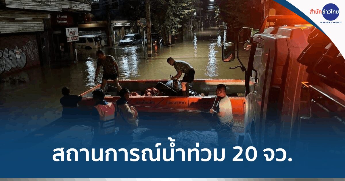 ปภ. รายงานมีสถานการณ์อุทกภัยในพื้นที่ 20 จังหวัด ได้แก่ เชียงราย เชียงใหม่ ลำพูน ลำปาง ตาก พิษณุโลก นครสวรรค์ เพชรบูรณ์ สุโขทัย อุดรธานี กาฬสินธุ์ ชัยภูมิ นครราชสีมา บุรีรัมย์ มหาสารคาม อุบลราชธานี สิงห์บุรี สุพรรณบุรี อ่างทอง และพระนครศรีอยุธยา รวม 76 อำเภอ 337ตำบล 1,561 หมู่บ้าน ประชาชนได้รับผลกระทบ 34,373 ครัวเรือน ส่งเจ้าหน้าที่ชุดปฏิบัติการพร้อมเครื่องจักรกลสาธารณภัย ระบายน้ำออกจากพื้นที่ พร้อมดูแลให้ความช่วยเหลือและบรรเทาความเดือดร้อนของประชาชนที่ได้รับผลกระทบ รวมถึงเร่งฟื้นฟูพื้นที่ที่สถานการณ์คลี่คลายให้กลับคืนสู่สภาพปกติอย่างต่อเนื่องและเต็มกำลัง