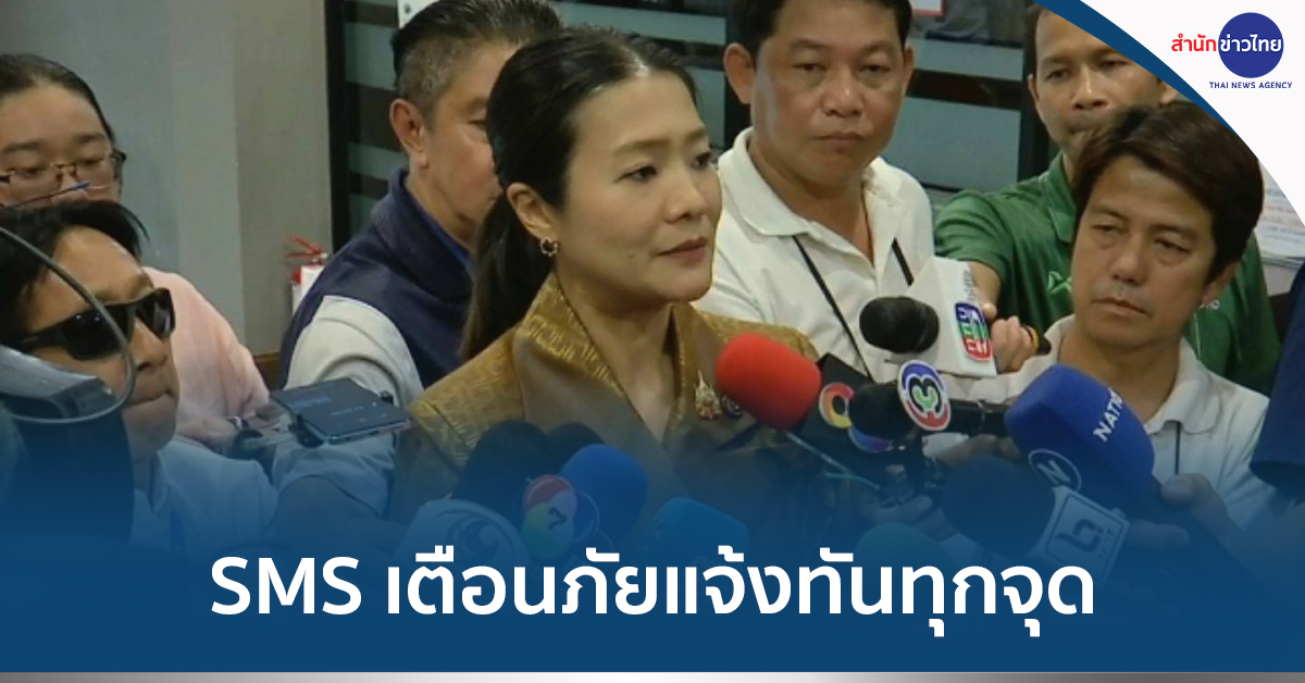 นางสาวธีรรัตน์ กล่าวอีกว่า เราสามารถแจ้งเตือนได้ทันที เพราะมีทุกช่องทางทั้ง SMS และองค์กรปกครองส่วนท้องถิ่น แม้ว่าจะไม่มีสัญญาณโทรศัพท์ก็จะได้รับสัญญาณเตือน.-317 -สำนักข่าวไทย