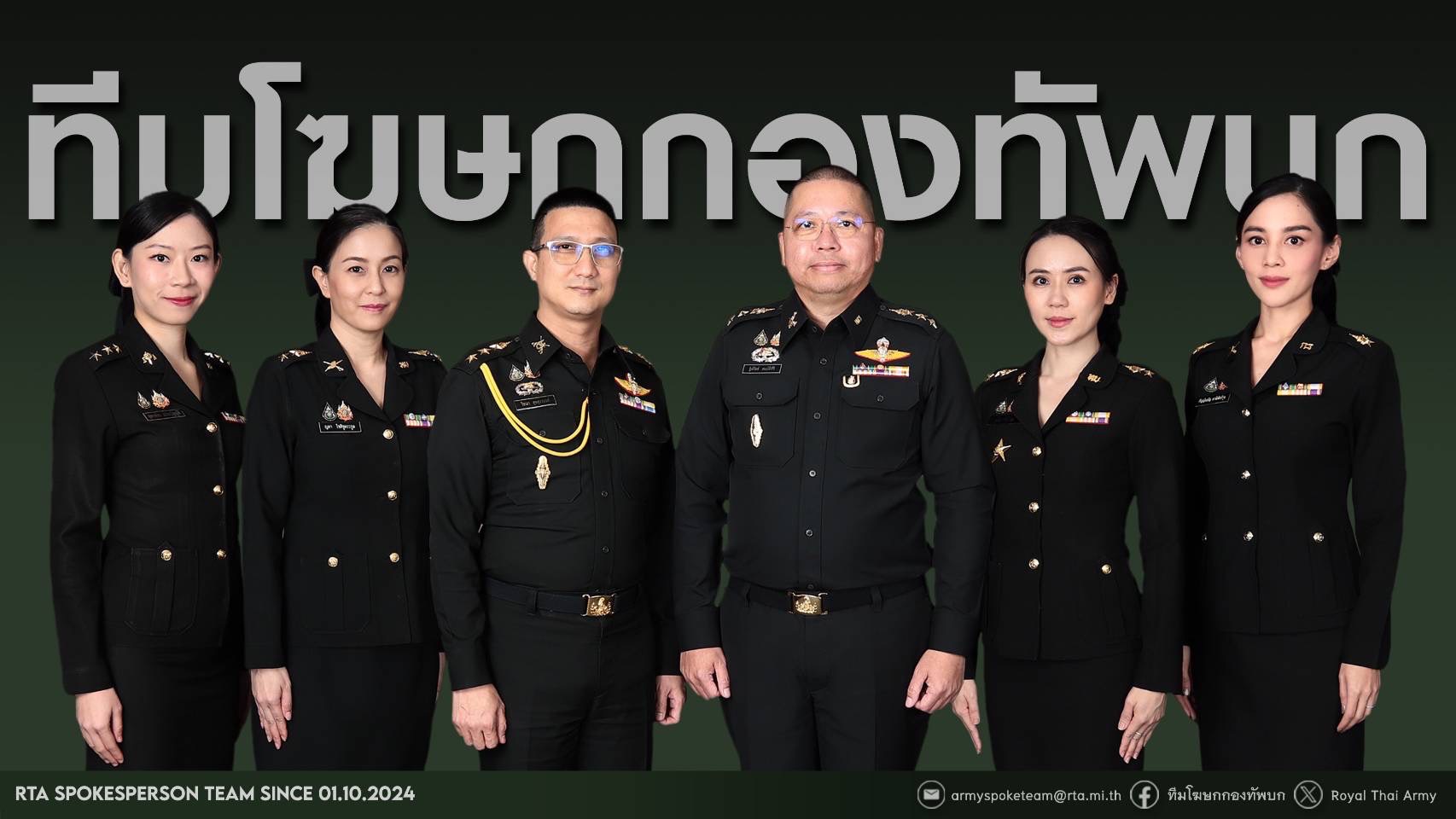 พล.อ.พนา แคล้วปลอดทุกข์ ผู้บัญชาการทหารบก ลงนามคำสั่งแต่งตั้งทีมโฆษกกองทัพบก โดยมอบหมายให้ พันเอก ฐิต์รัชช์ สมบัติศิริ รองเลขานุการกองทัพบก/รองโฆษกกองทัพบกขึ้นเป็นโฆษกกองทัพบก โดยใช้ทีมงานโฆษกกองทัพบกชุดเดิม ได้แก่ พ.อ.ริชฌา สุขสุวานนท์ เป็นรองโฆษกกองทัพบก, พันโทหญิง ปวีณา ศรีบัวชุม, พันโทหญิง ญดา โชติชูตระกูล, พันตรีหญิง กัญญ์ณณัฐ พรนิพัทธ์กุล และ ร้อยเอกหญิง จุฑาพัชร เปรมบัญญัติ เป็น ผู้ช่วยโฆษกกองทัพบก โดยให้ปฏิบัติหน้าที่ตั้งแต่ 1 ต.ค.67 เป็นต้นไป