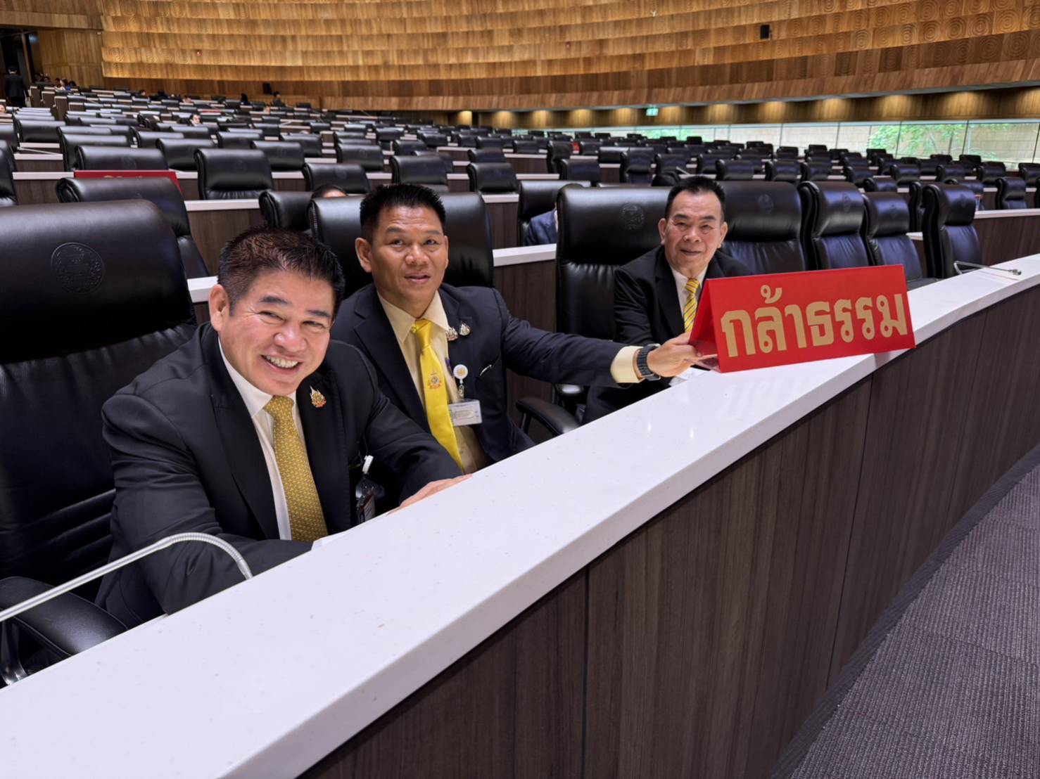รัฐสภา 10 ต.ค. – มาแล้ว “พรรคกล้าธรรม” มีที่นั่ง 2 สส.ในสภา หลังพรรคเดิมขับ “กฤดิทัช-เชาวฤทธิ์” ออก “ธรรมนัส” นั่งประกบในห้องประชุมสภา พร้อมป้ายใหม่วันแรก