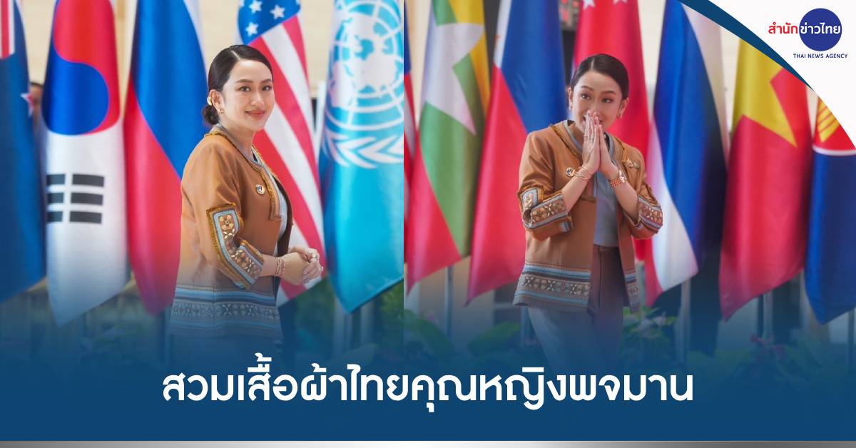 สปป ลาว 10 ต.ค.-นายกฯ สวมเสื้อผ้าไทยของคุณหญิงพจมาน จากโครงการแม่ฟ้าหลวง เข้าร่วมการประชุมสุดยอดอาเซียน