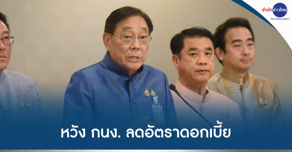 ทำเนียบ 15 ต.ค.-“พิชัย” รมว.คลัง คาดหวังที่ประชุม กนง.ในวันพรุ่งนี้ จะลดอัตราดอกเบี้ย เพราะเหมาะสมกับเศรษฐกิจที่กำลังฟื้นตัว-ภาวะเงินเฟ้อในประเทศยังต่ำ