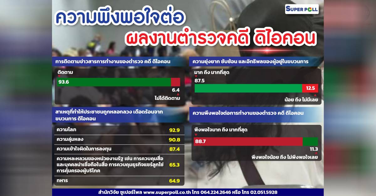 ที่น่าสนใจคือ ความพึงพอใจของประชาชนต่อการทำงานของตำรวจคดีดิไอคอน พบว่า