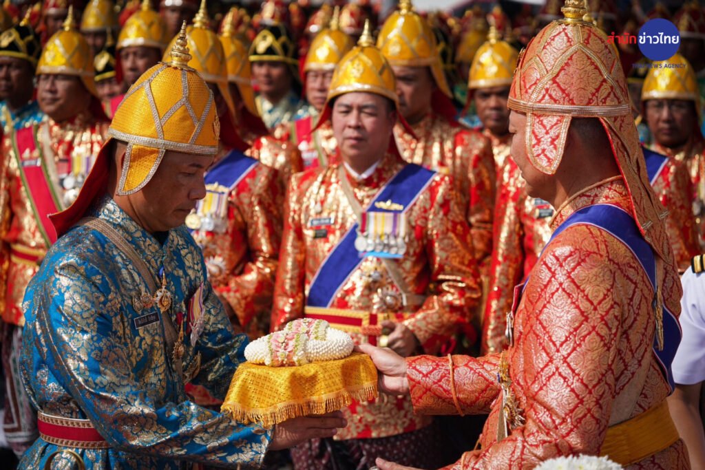 เมื่อพนักงานอ่านโองการ บวงสรวงแม่ย่านางเรือพระที่นั่งและเรือพระราชพิธี ในขบวนพยุหยาตราทางชลมารค ทั้ง 52 ลำจบ ประธานในพิธีได้มอบพวงมาลัยให้กับผู้ควบคุมเรือพระที่นั่ง และนายเรือพระที่นั่ง ทั้ง 4 ลำ และมอบพานพวงมาลัยนำไปบูชาแม่ย่านางเรือ ดังนี้