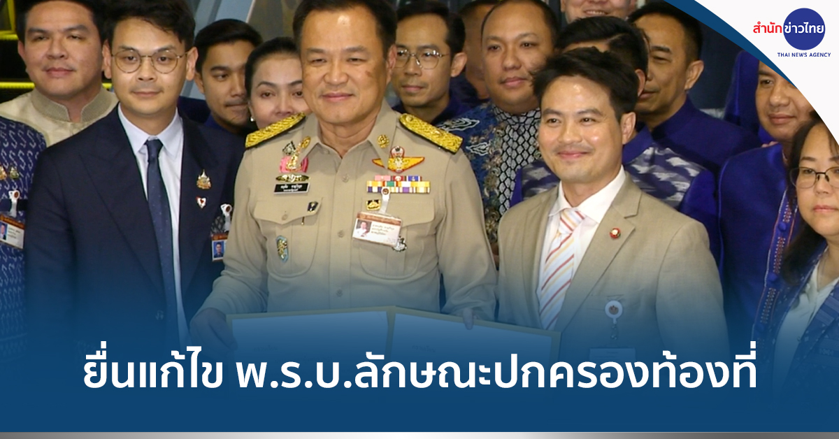 นายอนุทิน ชาญวีรกูล รองนายกรัฐมนตรี รัฐมนตรีว่าการกระทรวงมหาดไทย ในฐานะหัวหน้าพรรคภูมิใจไทย พร้อมด้วยตัวแทน สส. พรรคภูมิใจไทย ร่วมกันยื่นแก้ไขเพิ่มเติมร่างพระราชบัญญัติ (พ.ร.บ.) ลักษณะปกครองท้องที่ ต่อนายภราดร ปริศนานันทกุล รองประธานสภาผู้แทนราษฎรคนที่ 2