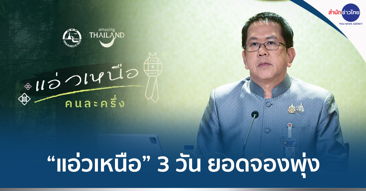 ทำเนียบ 4 พ.ย.- “แอ่วเหนือคนละครึ่ง” เวิร์ก 3 วัน นักท่องเที่ยวจองทะลุเป้า รัฐบาลเตรียมอัดแคมเปญกระตุ้นต่อเนื่อง