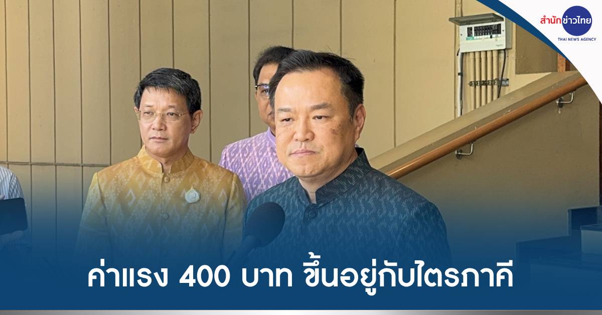 นายอนุทิน ชาญวีรกูล รองนายกรัฐมนตรีและ รัฐมนตรีว่าการกระทรวงมหาดไทย กล่าวถึง ค่าแรง 400 บาท ที่กระทรวงแรงงานประกาศจะเป็นของปีใหม่ 2568 นั้น ว่า ก็มีขั้นตอนมา ถือว่าเป็นนโยบายรัฐบาล ซึ่งเริ่มมาตั้งแต่รัฐบาลของนายเศรษฐา ทวีสิน อดีตนายกรัฐมนตรี ก็มีกระบวนการดำเนินการอยู่ โดยเฉพาะไตรภาคี หากเราได้รับความเห็นชอบผ่านคณะกรรมการไตรภาคี ซึ่งรัฐมนตรีไม่สามารถทำอะไรได้นอกจากการประสานให้ได้มากที่สุด แต่การตัดสินใจอยู่ที่คณะกรรมการไตรภาคี ที่ประกอบไปด้วยลูกจ้าง นายจ้าง และภาครัฐ